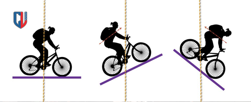 Khi leo dốc, trọng tâm của bạn sẽ thay đổi tùy theo độ dốc. Đối với những con dốc đứng, hãy hơi nghiêng người về phía trước để giữ cho bánh trước bám đường và tránh bị bốc đầu. Trong trường hợp mặt đường trơn trượt, hãy dồn trọng lượng về phía sau một chút để tăng độ bám cho bánh sau, tránh bị trượt bánh.